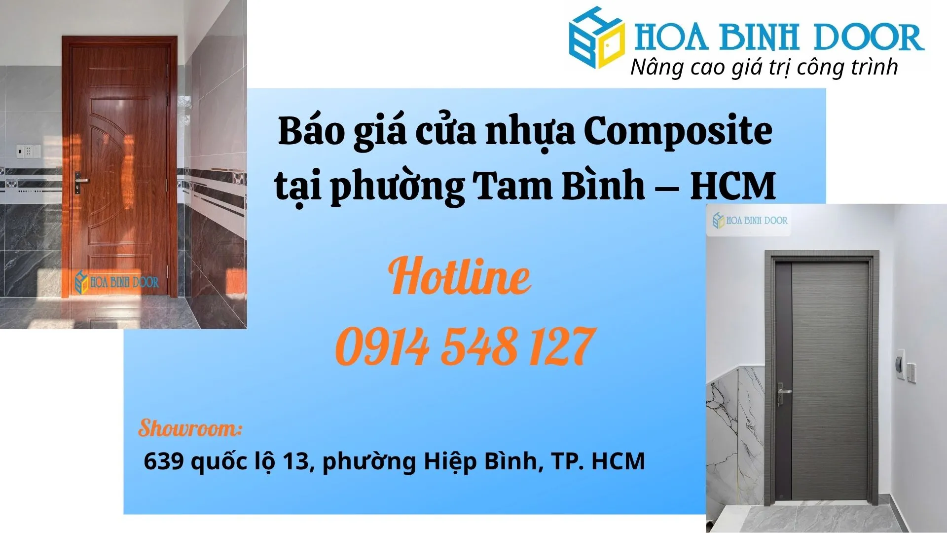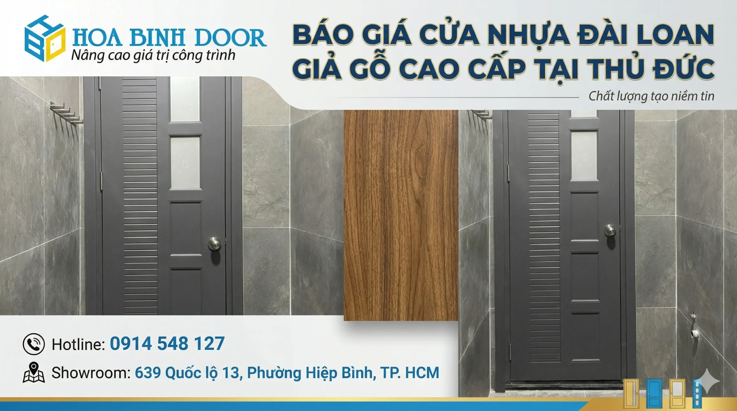 Hoabinhdoor là thương hiệu uy tín lâu năm chuyên cung cấp đa dạng các dòng cửa chất lượng cao tại TP.HCM và nhiều tỉnh thành trên cả nước. Với phương châm “Chất lượng tạo uy tín – Dịch vụ tạo niềm tin”, Hoabinhdoor không ngừng nâng cao chất lượng sản phẩm và tối ưu trải nghiệm khách hàng trong từng dự án.